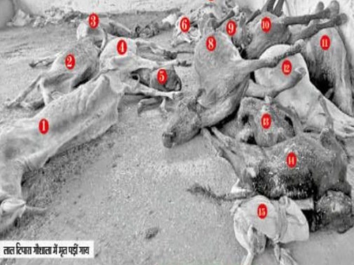 Pile of dead bodies in the state’s ideal cow shelter | प्रदेश की आदर्श गौशाला में शवों का ढेर: ग्वालियर नगर निगम की लाल टिपारा गौशाला में 15 गौवंश की मौत… एक के ऊपर एक पड़े थे शव – Gwalior News
